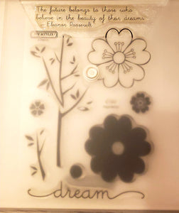 *Crafting for a cause - Close to My heart My Acrylix clear Stamp set in storage pouch - Used - Aspiration